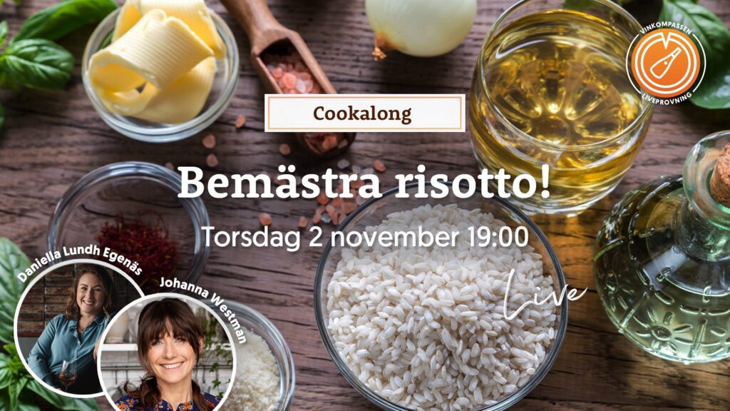 Ange här i evenemanget att du kommer så får du en notis när sändningen startar. Ingen specifik länk behövs alltså. Bjud hem dina vänner, laga middag tillsammans med oss och lär dig bemästra risotto. Ju fler vi är som hänger tillsammans genom skärmen, desto roligare! 🍷