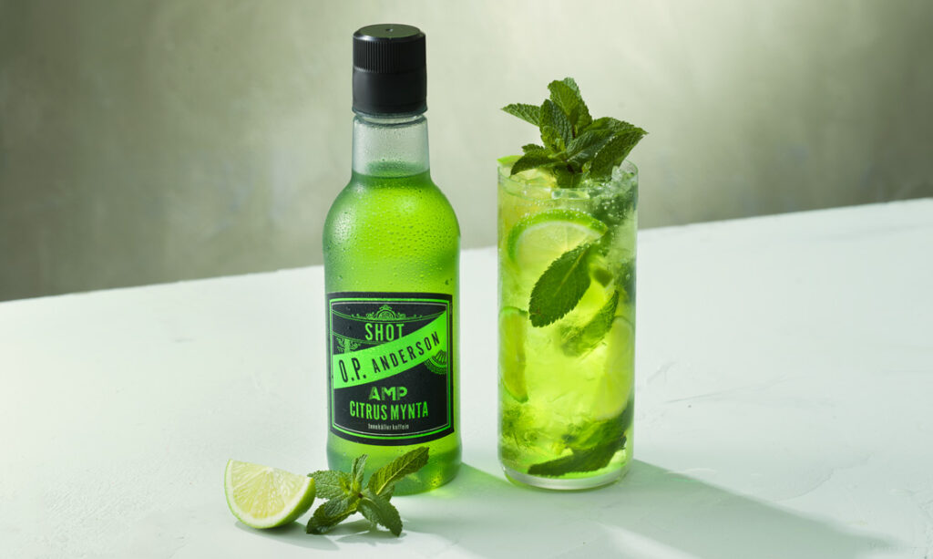 O.P. Anderson AMP Shot är en uppfriskande shot med frisk smak av citrus, mynta och Gunpowder grönt te. Koffeinet i det gröna teet tillsammans med ett sting av chili ger även en extra AMP!